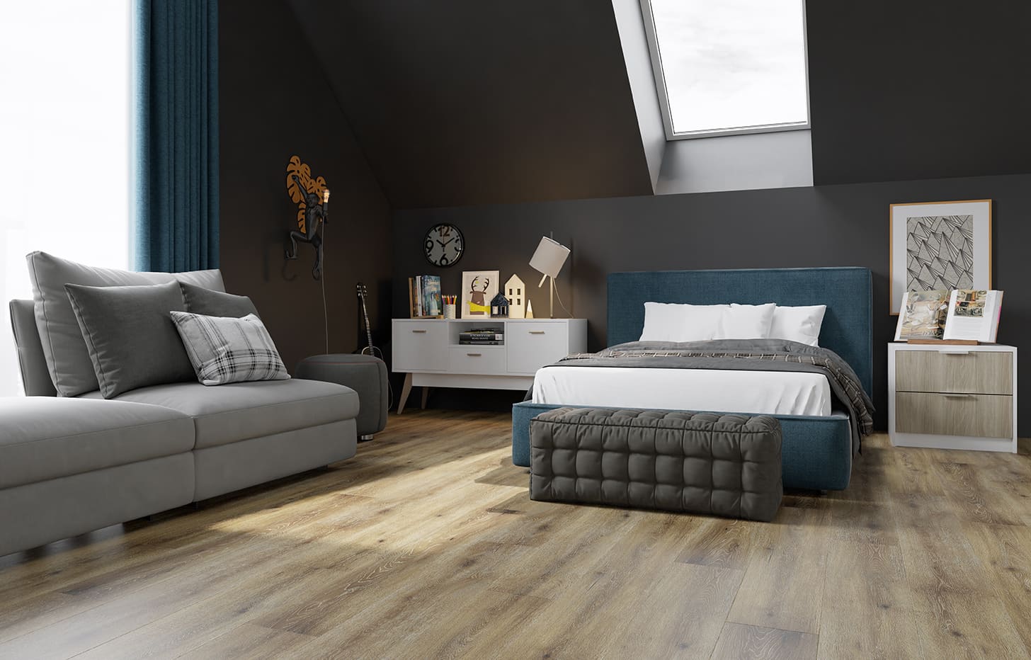 Адреса магазиновМинерально-каменный Ламинат MSPC Дуб Уютный дом - это полы светло-коричневого оттенка с легкими холодными нотками. Хорошо сочетаются с бежевыми, бордовыми, синими и серыми цветами в стеновых решениях. Легкие седые прожилки помогают гармонировать с белыми эмалевыми дверями и плинтусом. Дуб Уютный дом имеет высокую Anti Scratch защиту и подходит для использования в доме с домашними животными.