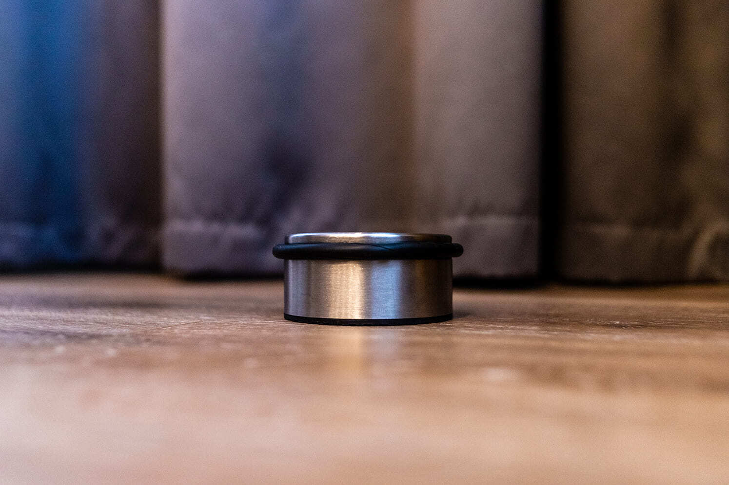 За счет круглой формы и плотных каучуковых уплотнителей оберегает поверхность двери от ударной нагрузки, сохраняя её в идеальном состоянии долгие годы.